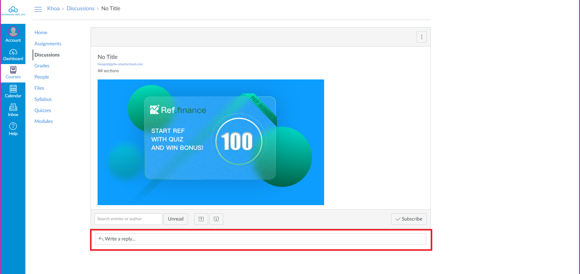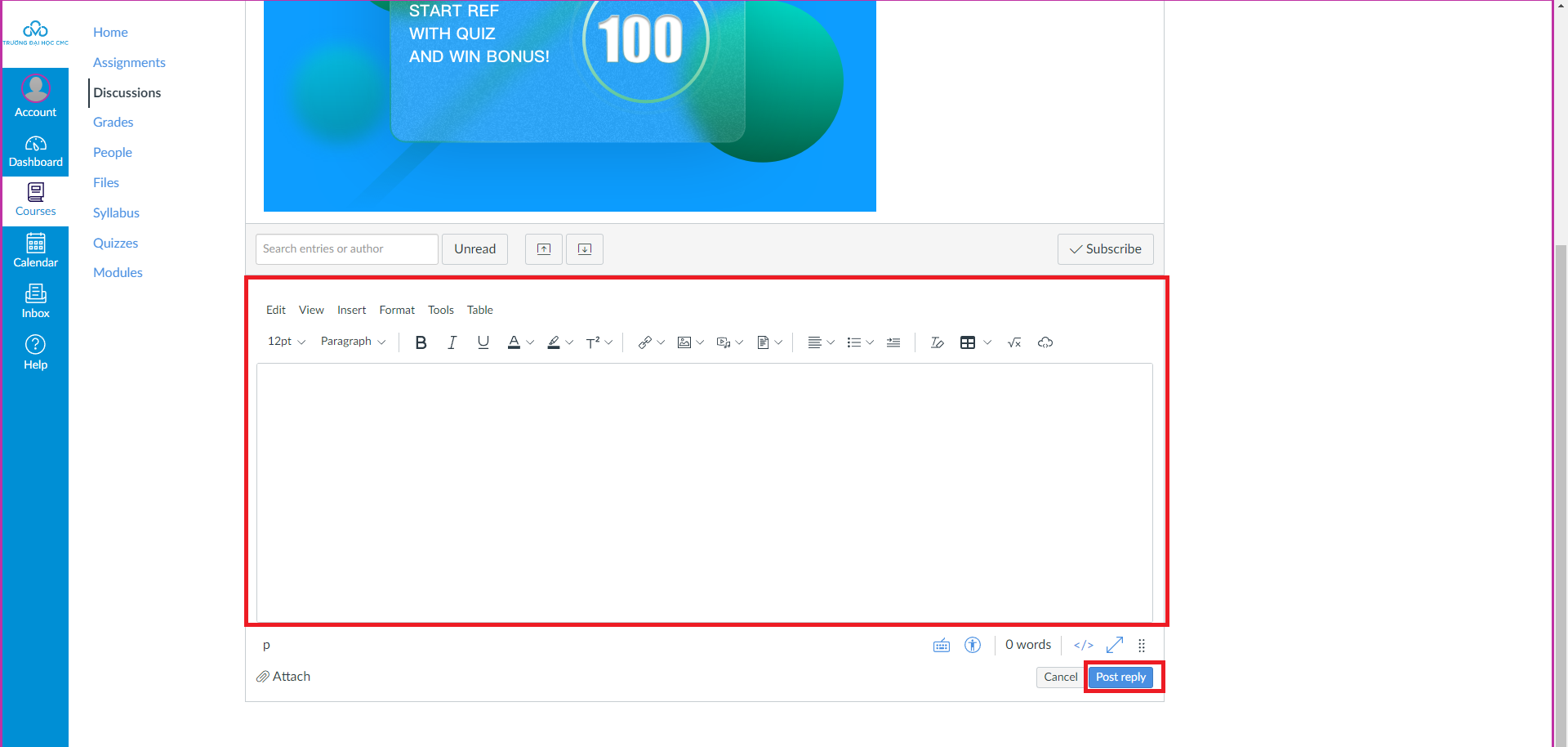 #### Bước 3: Chọn vào vùng Reply để nhập nội dung muốn thảo luận <a href="#buoc-3-chon-vao-vung-reply-de-nhap-noi-dung-muon-thao-luan" id="buoc-3-chon-vao-vung-reply-de-nhap-noi-dung-muon-thao-luan"></a>